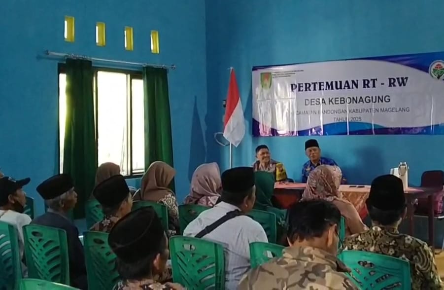 Polres Magelang Kota – Bhabinkamtibmas Desa Kebonagung Kecamatan Bandongan Bripka Irvandiansyah P. W melaksanakan sambang di Balai Desa Kebonagung menghadiri kegiatan pertemuan RT dan RW se-Desa Kebonagung. Jumat (2/10/2025).