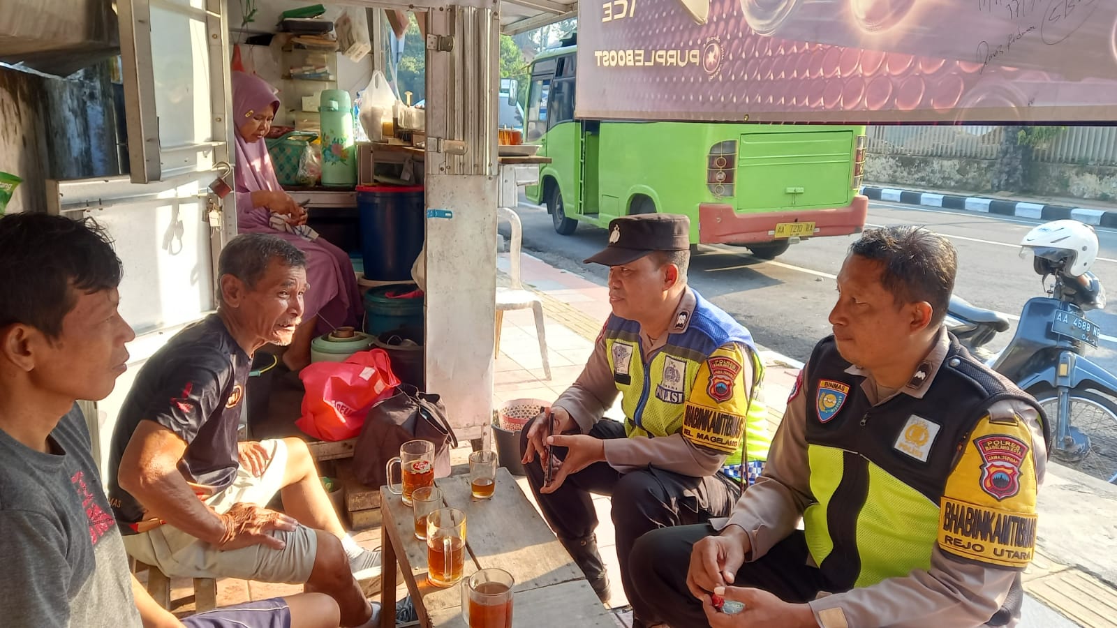 Polres Magelang Kota – Bhabinkamtibmas Kelurahan Rejo Utara, Kecamatan Magelang Tengah, Aipda Agus Setiawan melaksanakan kegiatan sambang dan memberikan himbauan kamtibmas kepada warga serta sukarelawan pengatur lalu lintas di wilayah binaannya. Selasa (7/10/2025).
